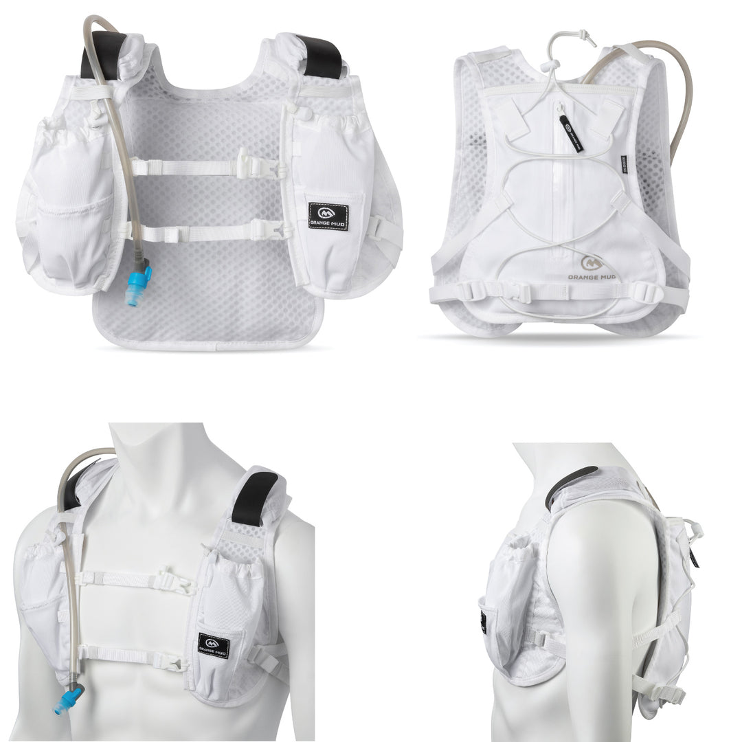 - Bladder: HydraPak 2L (70oz) elite, with quick disconnect and blaster valve.
