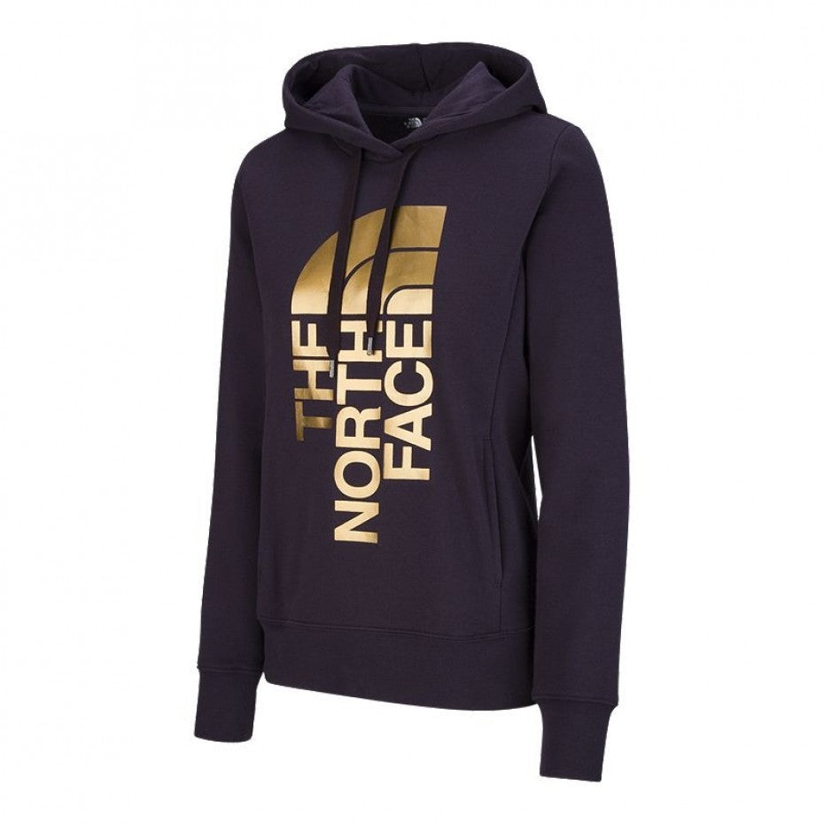 The North Face Women's Scripter Pullover Hoodie features The North Face logos screened on front left and down left sleeve. Allover heathering. Ribbed cuffs and hemline. Drawstring hood. Kangaroo hand pocket.